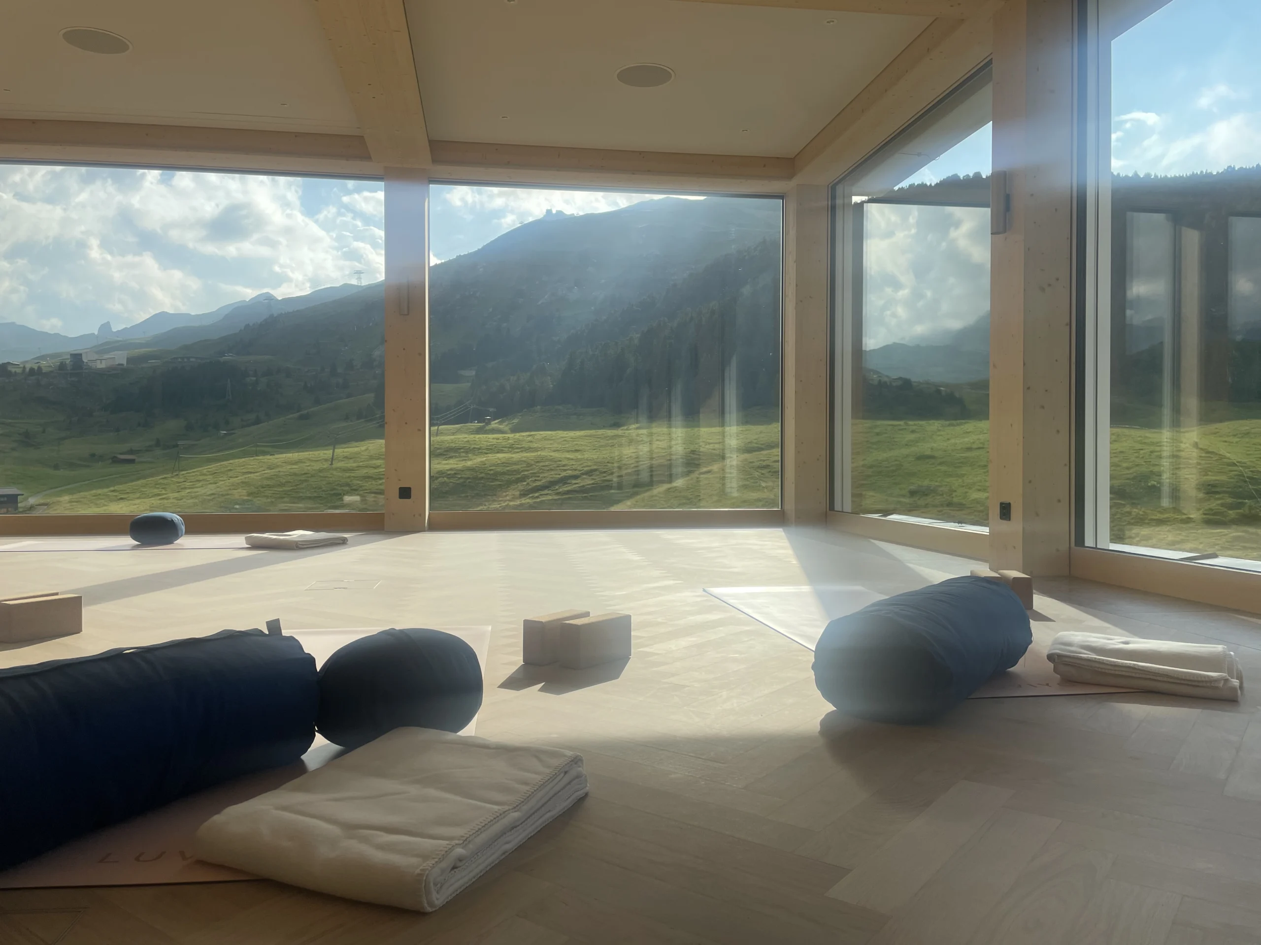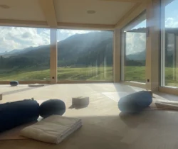 Erlebe ein inspirierendes Yoga-Wochenende auf 1900 Metern Höhe, eingebettet in die majestätische Bergwelt, im Hotel Prätschli in Arosa, wo der lichtdurchflutete Yoga-Raum „Überflieger“ mit Panoramablick hoch über dem Tal den idealen Ort bietet, um Körper, Geist und Seele in Einklang zu bringen.