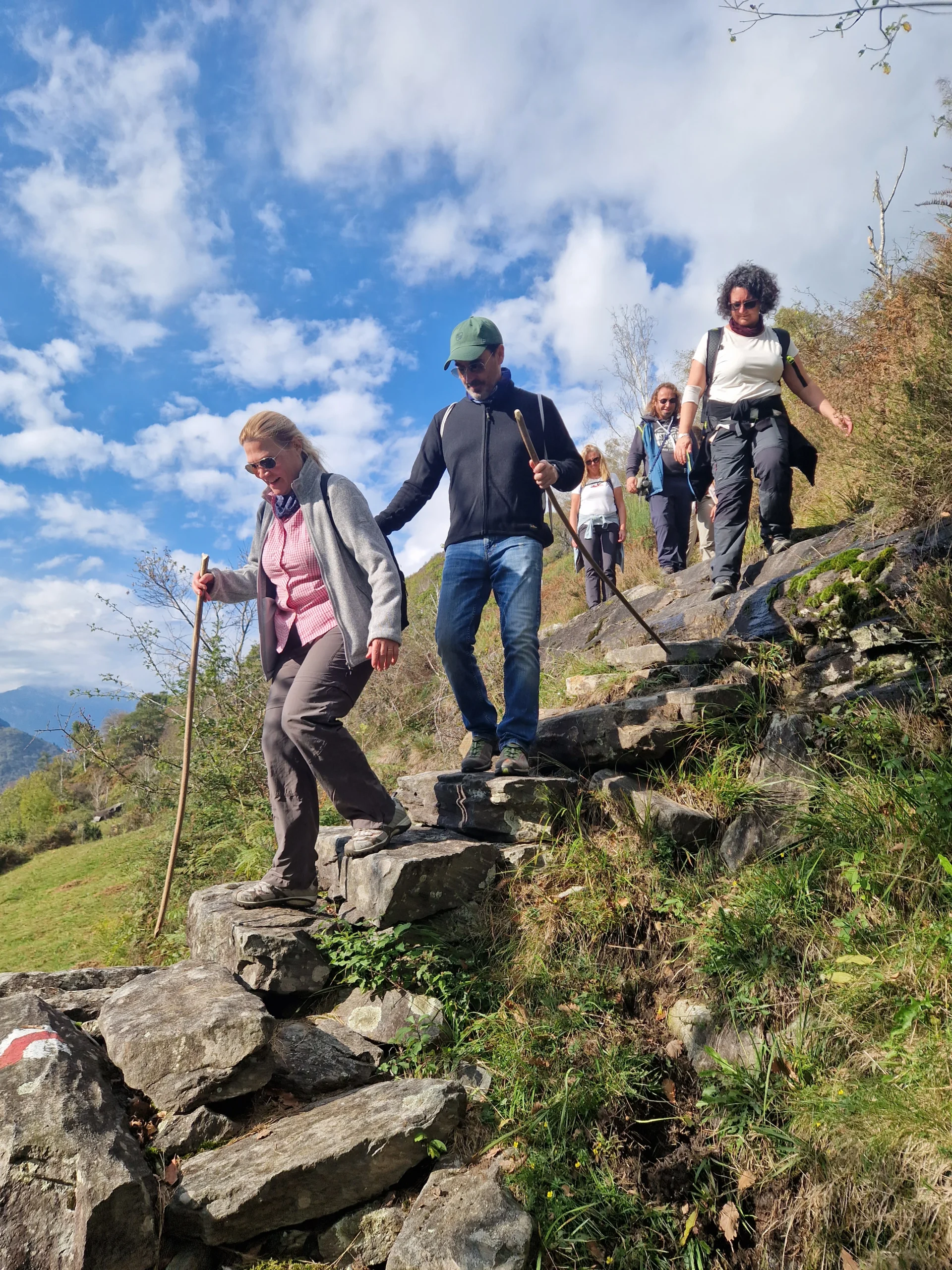 In Cimalmotto beginnt unsere Wanderung. Auf Bergwegen steigen wir stetig bergauf und überwinden gleich zu Beginn den grössten Teil der rund 800 Höhenmeter. Jede und jeder geht im eigenen Tempo, wir nehmen Rücksicht, machen kurze Pausen und lassen die Landschaft wirken.
