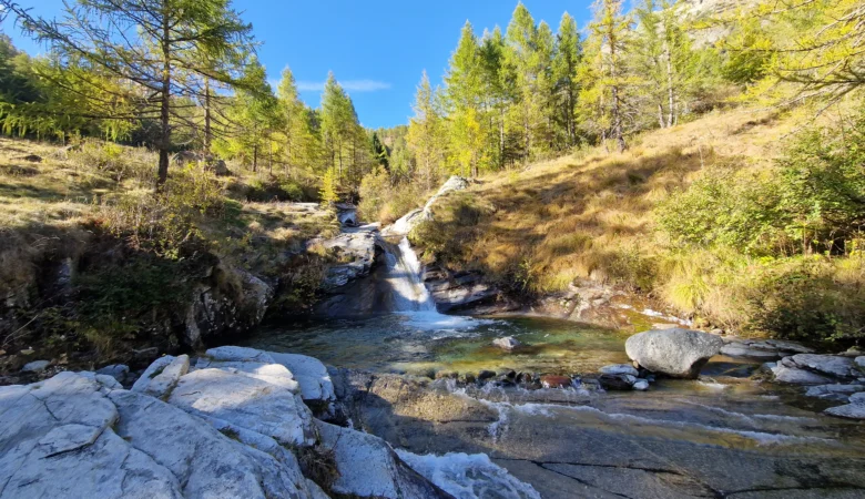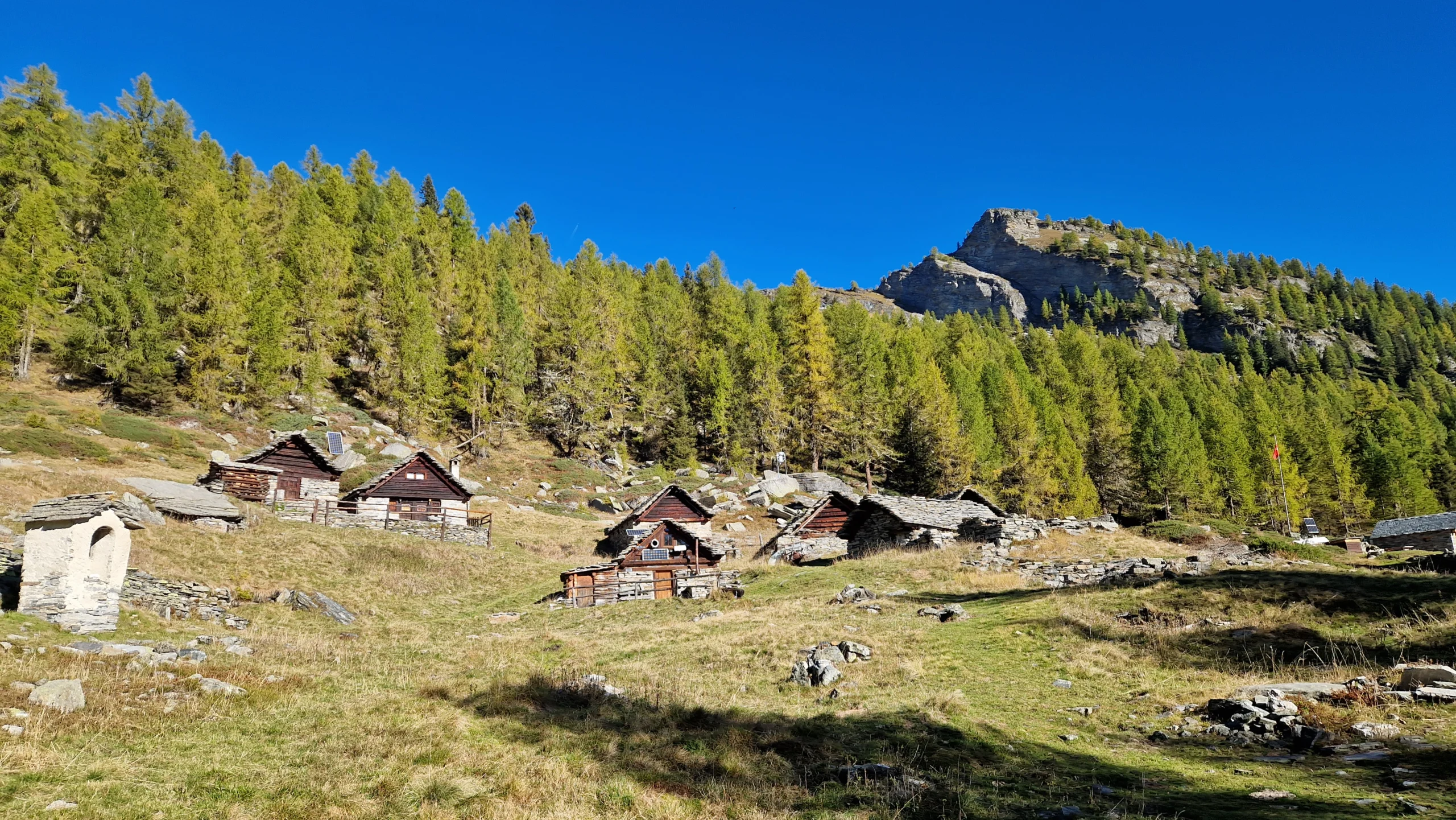 Nach dem Frühstück starten wir früh – und schon die Anreise ist Teil des Erlebnisses: Mit dem Bus fahren wir rund eine Stunde durchs obere Maggiatal bis nach Cimalmotto. Abgelegene Dörfer, enge Talpassagen, viel Ursprünglichkeit – das Tal zeigt sich von seiner stillen, starken Seite.