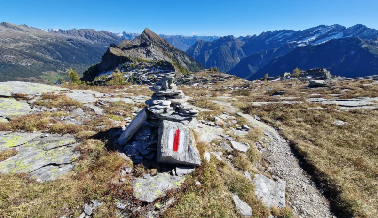 Danach geht’s dem Kamm entlang weiter und in den Abstieg Richtung Chumma durchs Bosco-Gurin-Tal. Wer möchte, kann einen Teil bergab mit dem Sessellift abkürzen – oder zu Fuss bis ins Walserdorf Bosco Gurin weitergehen. Dort gönnen wir uns einen Kaffee oder Apéro, bevor wir mit dem Bus zurück ins Maggiatal fahren.