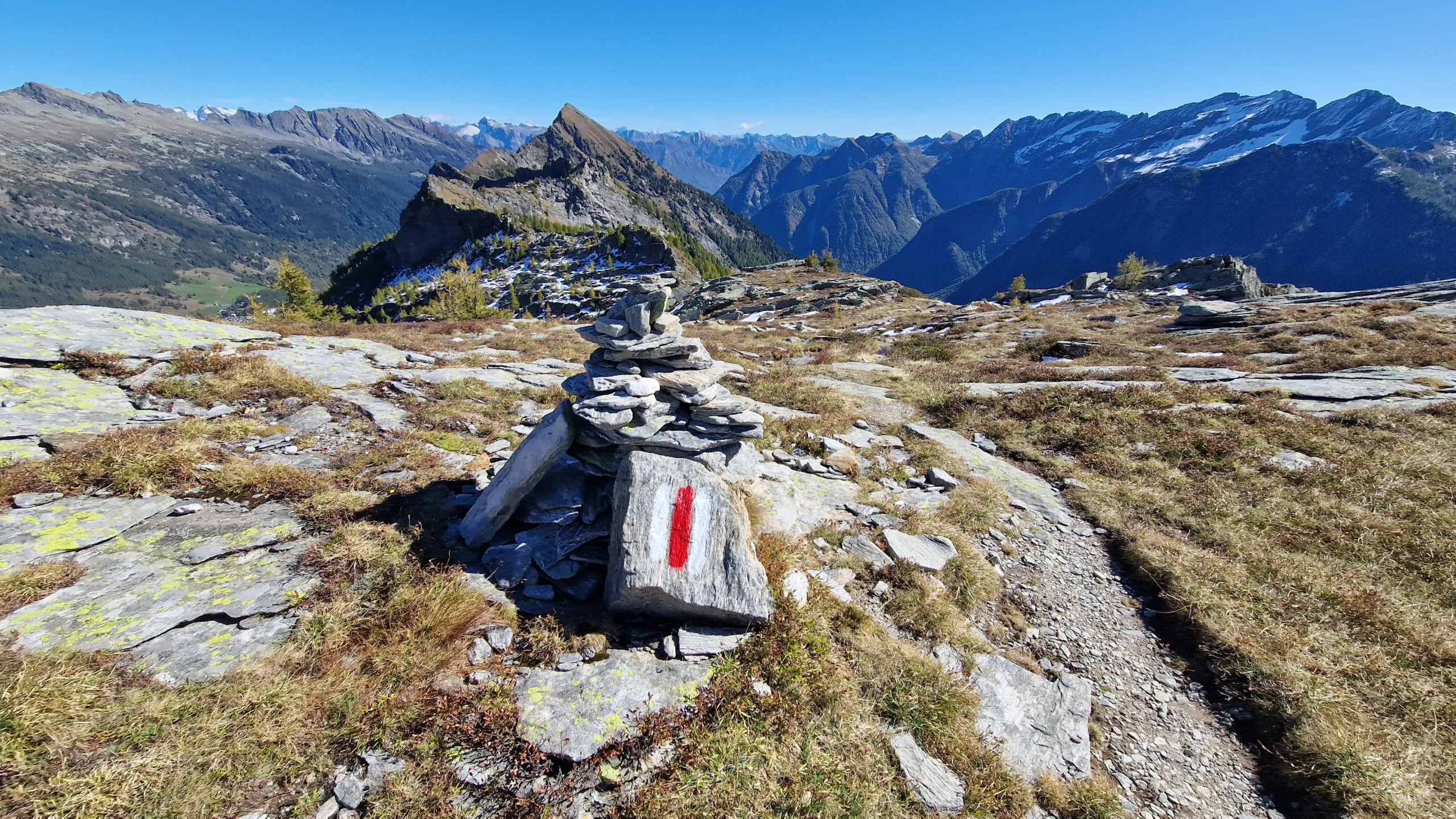 Durch Wald- und Alplandschaften erreichen wir den Passo Quadrella (ca. 2’137 m). Oben wird’s weit: ein 360-Grad-Panorama, Berge rundum, Weite im Blick. Hier geniessen wir unsere Mittagspause – mit einem feinen Sandwich und dem guten Gefühl: Das haben wir geschafft.