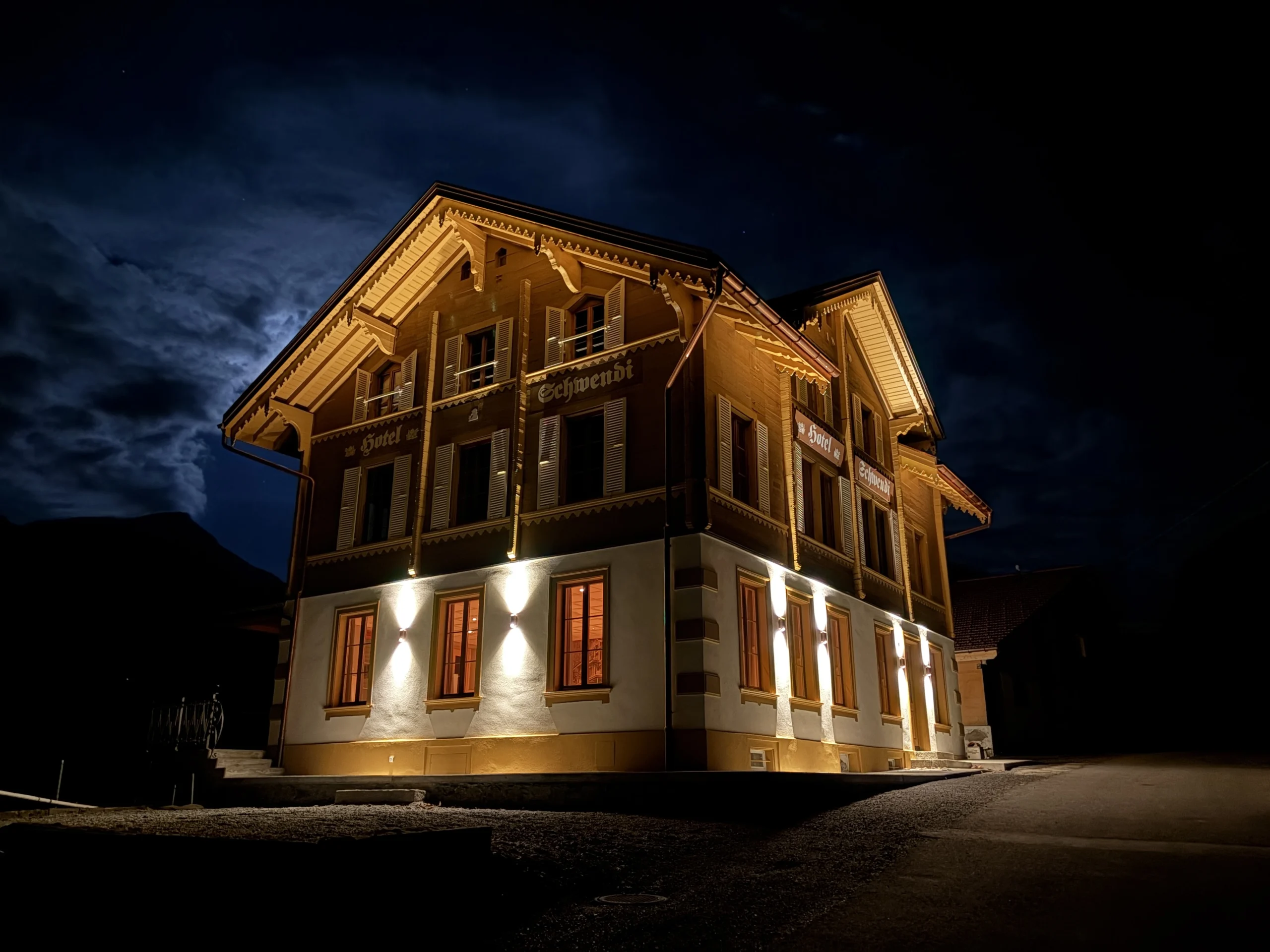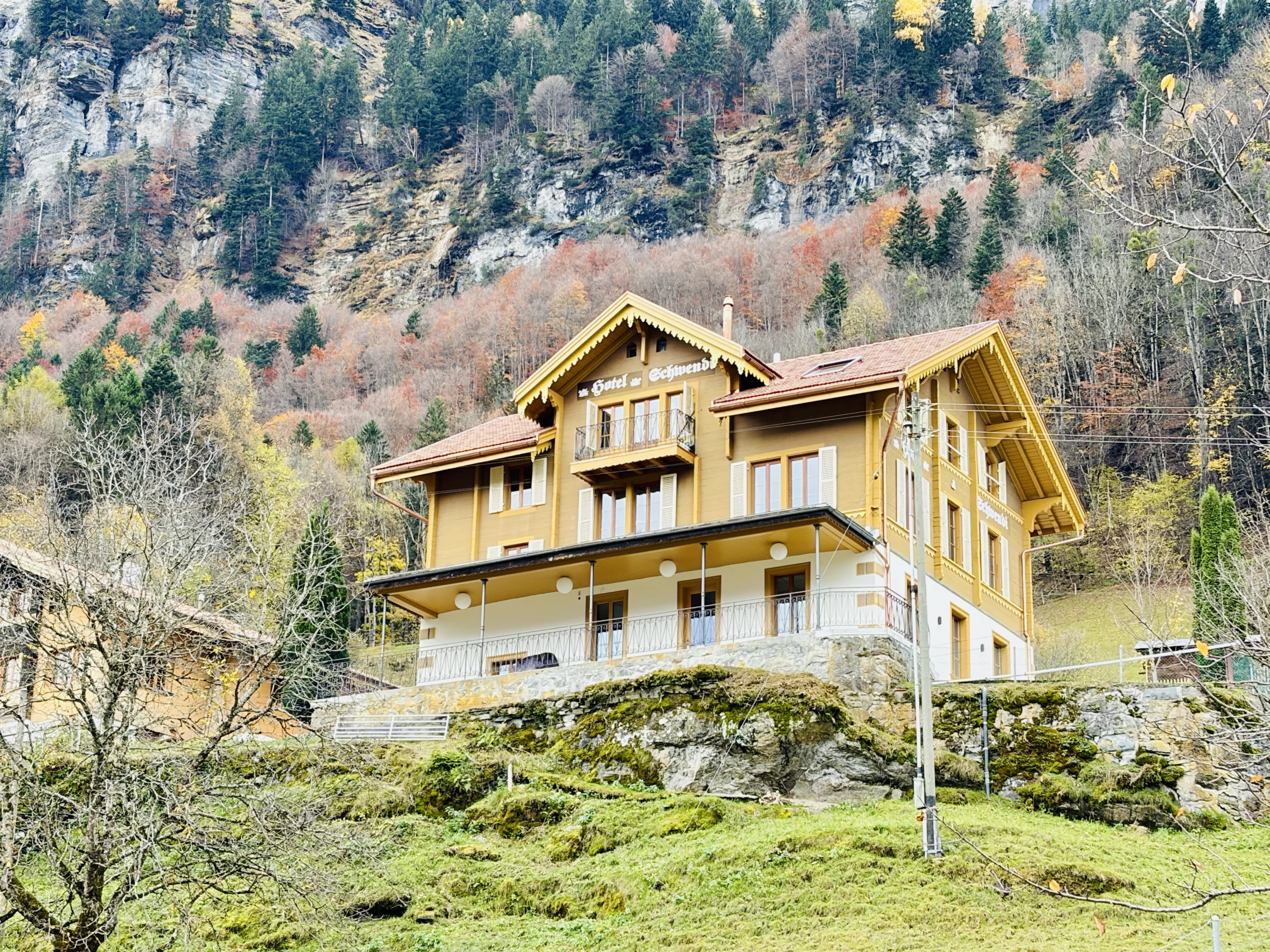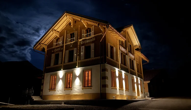 Die Schwendi steht auf festem Fels – hoch über Meiringen, wo das Tal sich öffnet und der Blick weit wird. Früher ein kleines Hotel mit zwölf Zimmern und fliessend Wasser – ein Zeichen von Modernität im frühen 20. Jahrhundert. Heute ein Ort der Inspiration für Menschen, die bewusst unterwegs sind.
